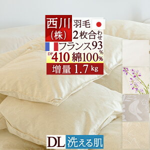全品P5&最大10%OFFクーポン★[20日16時~8H] 羽毛布団 ダブル 西川 2枚合わせ 『増量1.7kg』 ダブルサイズ フランス産ダウン93% DP410 羽毛ふとん 綿100% 洗える 日本製 1年中使える デュエット...