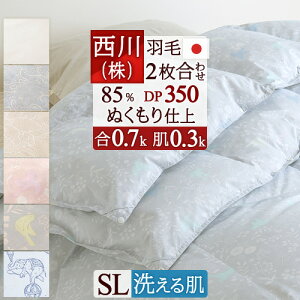ン★[20日16時~8H] 2枚合わせ 羽毛布団 西川 シングル 日本製 抗菌 洗える 羽毛ふとん シングルサイズ ダウン85% DP350 1.0kg 合い掛け羽毛布団0.7kg 羽毛肌掛け布団0.3kg...