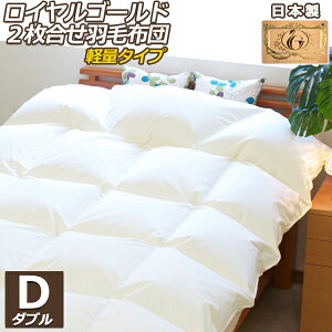 ロイヤルゴールドラベル 2枚合わせ羽毛布団(肌掛け布団+合掛け布団)【ダブルサイズ/190×210cm/軽量】。羽毛 ダックダウン93%使用 ロイヤルゴールドラベル(★★★★★5つ星認定品)。ダウンパワー400cm3/g...