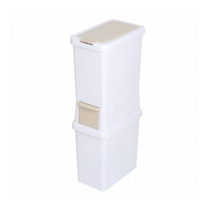 【商品説明】省スペースで分別可能な縦型の2段式ダストボックス41Lです。幅が約23cmのスリムタイプで、キッチンのちょっとした隙間に設置できます。上段は片手で開けられるワンプッシュオープン式です。下段はペットボトルや空き缶など