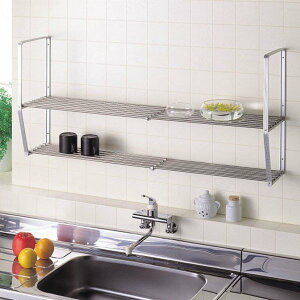 キッチンの便利収納。 使い勝手を考えた便利設計。 スライド式ですっきり取付け出来ます。 棚がスライドしますので空間のムダなくスッキリ取付け出来ます。 パイプ・パイプ受ともサビや汚れに強い18-8ステンレスを使用しています。 棚板