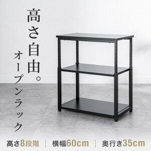 高さ8段階で調整して使うことができるオープンラック。シンプルで使いやすい設計で、単体使いもデスクと組み合わせて使えるシェルフラック。幅60cm、奥行35cm。ブラック。<特長>●高さ8段階で調整することができるオープンラックです...