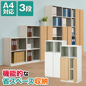 【Pコード:234237】A4対応&省スペース!施錠できる扉付きの木製3段コンビキャビネット