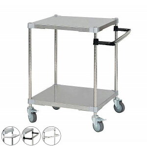 耐錆、耐薬性が要求される環境で抜群の耐久性を発揮するステンレス(SUS304)製カートの移動や棚横の物掛けとしても便利なハンドル付き棚板部分はフラットに折り曲げられている為、汚れなどが溜まりにくく、物の出し入れがしやすい設計
