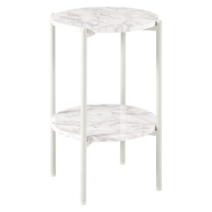 商品のご紹介 円形 サイドテーブル LST-4668 小さめサイズなのでソファサイドやベッドサイド、玄関など場所を選ばず使えます。便利な中棚付き ■木目の凸凹まで再現した木目シートと、シックな素材感の石目調シート使用 ■耐水性抜群のシ