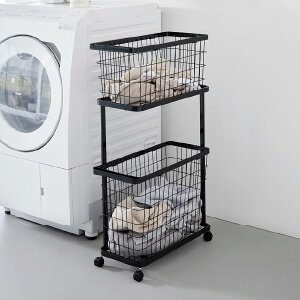 ■商品説明 ●色柄物や汚れた洗濯物を分けて溜められるランドリーワゴン。 ●1人暮らしから2人暮らしに丁度良い2バスケットタイプ ●シンプルデザインで清潔感を与えるランドリーラック。 ●洗濯物やランドリー用品をひとまとめに収納し