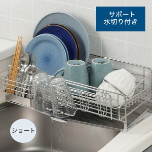 サポート水切りが出てくる水切りバスケット ショートの解説 洗い物が多い時には下段を引き出して収納力が2倍にアップ! 省スペースなのに1〜2人分の食器とフライパン・鍋・ボールなどの調理器具を収納することができる水切りカゴ。 2ヵ
