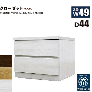 押入れ上段で布団台して使用するのにピッタリな2段タイプのチェストです。引出し1つあたりの収納目安はTシャツが約30枚、セーター・トレーナー・バスタオルなら約6枚、Yシャツが約12枚です。