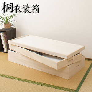 桐材は内部を一定の湿度に保とうとする働きがあり、桐衣装箱は大切な衣類の保管に最適。着物がたとう紙ごと入る大きさで、タンスの上や押入れに置ける桐衣装箱。家具で有名な九州・大川で生産。小物用の仕切り板付き。 【サイズ】(約)幅91×奥行...
