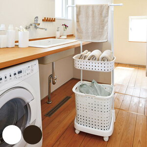 ●白物・色柄物・汚れ物・タオルの替えなど、大小2つのバスケットで分別が可能です。 ●縦型収納にすることで省スペースで大容量の収納力を確保しました。 ●取っ手付きのバスケットは干す時、取...