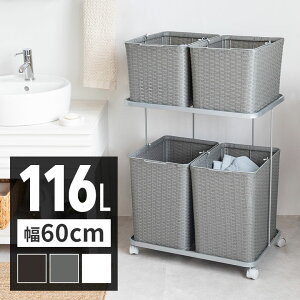 ■サイズ(cm) 約 W 60 × D 40 × H 97 かご上段内寸:約 W 26 × D36 × H 26 かご下段内寸:約 W 26 × D36 × H 40 かご上段容量:約 23L×2 かご下段容量:約 35L×2 ※多少...