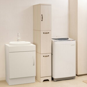 、素敵なランドリー空間に。 ●白物・色柄物・汚れ物・タオルの替えなど、大小4つのバスケットで分別が可能です。 ●縦型収納にすることで省スペースで大容量の収納力を確保しました。 ●取っ手付きのバスケットは干す時...