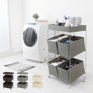 お洒落なランドリーに映えるシックなカラー。タオルや着替えなどお風呂回りの必需品を収納出来るカゴ付きワゴン。キャスター付きで移動も楽々。タオル、着替え、バスグッズなどお風呂の必需品をワゴンですっきり収納◆アイテム別、家族別に洗濯物を分別...