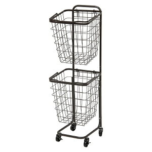 サイズ/約幅44.5×奥行34×高さ84cm 上段カゴ:幅28.5×奥行38×高さ22.5cm 下段カゴ:幅28.5×奥行38×高さ36cm 重量/約6kg 容量/上段カゴ:約19L、下段カゴ:約30L 内容量/1セット<br