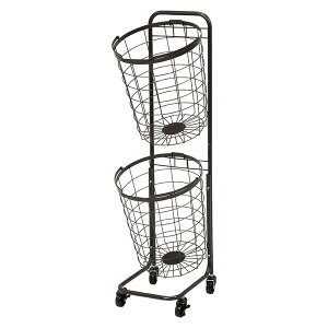 サイズ/約幅59.6×奥行35×高さ136cm 内寸/上バスケット:約幅41.6×奥行28.4×高さ10.8cm 下バスケット:約幅34.8×奥行24.8×高さ36.5cm 重量/約2.3kg 内容量/1台 材質/バスケット、