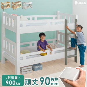 静止耐荷重約900kgのおしゃれで頑丈な高機能2段ベッド!太めの角柱と補強材によって安心安全な耐荷重を実現しました。梯子は左右組み換え可能で垂直なので省スペースです。宮棚、ライト、コンセント、フックも付いていて機能性抜群です...