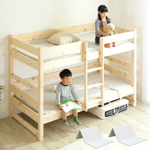 静止耐荷重約300kgのおしゃれで頑丈な2段ベッド!パイン無垢材と相性のいい淡い色味を組み合わせ北欧デザイン。お子様の背長に合わせて分割して使用することも可能です。梯子は左右組み換え可能で垂直なので省スペースです...
