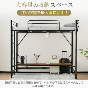 スペースを有効に使える、デスク付きロフトベッド。コンセント付きの宮棚は、スマートフォンの充電や小物の収納に便利です。★お客様組立★●商品サイズ(cm)幅約230×奥行約106.5×高さ約180●商品重量約52.3kg●主要材質スチール...