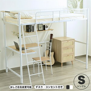 ロフトベッド パイプベッド シングル コンセント付き デスク付き 収納棚 収納 子供ベッド 北欧風 二段ベッド 子供部屋 二段ベッドパイプ
