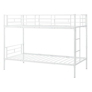 【ホワイト】二段ベッド 2段ベッド スチール 耐震 ベッド シングル パイプベッド 2段ベット パイプ 金属製 頑丈 垂直はしご ロータイプ 2段ベッド 業務用二段ベッド 社員寮 学生寮 大人用可。商品サイズ:...