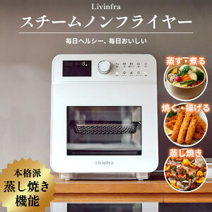 商品名 Livinfra スチームノンフライヤーfinom モデル名 LVF-SNFF-W 本体サイズ 幅360×奥341×高397mm 本体重量 9.84kg 総重量 12.88kg 電源ケーブル 1.2m 電源 AC 100V 5...