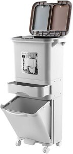 【頼れる万能アシスタント、ゴミ分別ももう悩まな】二段三分別設計で、ゴミの分別と整理が一度に完了します。それぞれの層に異なる種類のゴミを分けて捨てられるため、分別が簡単で効率的です。ゴミ捨ての手間が減り、キッチンやリビングがいつもスッキ...