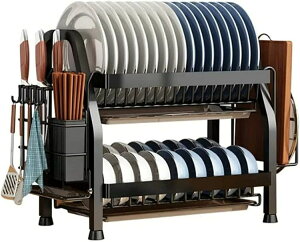 メイン素材:炭素鋼サイズ:1段*高さ54.5cm 2段*高さ81.5cm。■【素材】食器用水切りラック,炭素鋼製。厚く、頑丈で耐久性があります、強い耐荷重、滑り止めデザイン、耐熱性、防水。