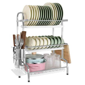 商品情報 商品紹介 省スペースの2段食器水切り:コンパクトな食器乾燥ラックには、お皿ラック1×1、調理器具ラック×1、ナイフ&カトラリーラック×1、 まな板ラック×1、取り外し可能な水受けトレー×2が含まれます...