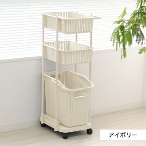 隙間にスッと置ける!スリムでも大容量! メッシュ仕様で通気性バツグン! ニットのようなデザインとナチュラルカラーがおしゃれ♪ ファミリーでのご使用にオススメ!3段タイプのランドリーバスケットです。 ■スッキリ置けるスリムな