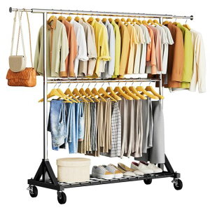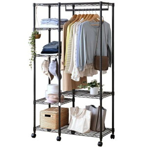 AZAKBL ハンガーラック 頑丈 2段 洋服ラック 大容量 キャスター付き クローゼット ワードローブ 洋服掛け 防サビ加工 組み立て簡単 高さ調節 省スペース おしゃれ ハンガーかけ コートハンガー...