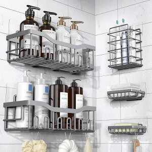 5個セットキッチン 調味料ラック 壁掛け 粘着式 収納棚 浴室 洗面所用品 金属製 2段 グレー シルバー ブラック 大容量 折り畳み式・カテゴリ: -・素材: 金属・カラー: グレー, シルバー, ブラック...