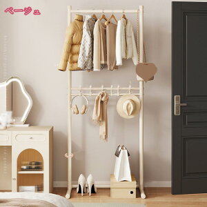 いため、調和を取りやすく様々なイメージのお部屋にも、すんなり馴染む木材です。 【多機能デザイン】 2段構造で、上段にはコートやジャケットを掛け、下段には靴やバッグを置くことができます。キャスター付きなので...
