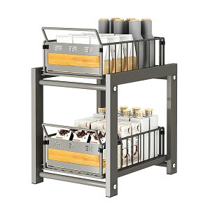 ・【2段スライド式 シンク下 収納】2段式の引き出し式シンク下収納ラックは、力を入れずにスムーズにバスケットを引き出すことができます。必要なものをスムーズに取り出せます。ご注意:ご使用のキャビネットの開口部の縁が盛り上がっ