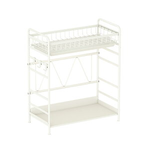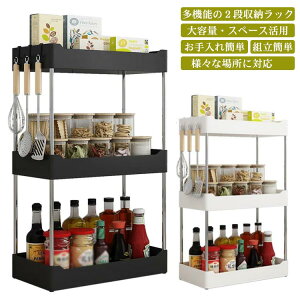 【多機能の2段収納ラック】 砂糖や塩などの調味料など、いろいろと収納できますよ。台所だけでなく、寝室、浴室、化粧品コーナー、書斎など、用途に合わせてご使用いただけ、収納力は抜群です。本製品の表面はプラスチック素材を採用
