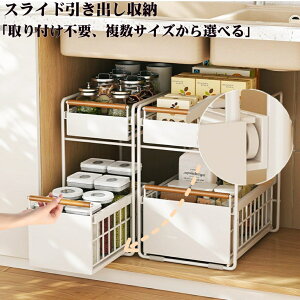スライド 大容量 引き出し 2段 キッチン収納 洗面台下 収納ラック キッチンラック 台所 整理収納 キッチンストッカー スチール製丈夫 シンク下収納ラック シンク下ラック 収納 スライド 大容量 整理収納...