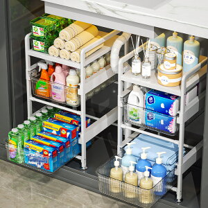 ・【2段スライド式 シンク下 収納】2段式の引き出し式シンク下収納ラックは、力を入れずにスムーズにバスケットを引き出すことができます。必要なものをスムーズに取り出せます。ご注意:ご使用のキャビネットの開口部の縁が盛り上がっ