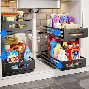 【2段引出し式収納ラック】2段式の引き出し式シンク下収納を上手く活用できる便利アイテムです。スライド式の設計は奥のものも簡単に取り出すことができ、使用習慣に応じて自由にアレンジですます。2段式デザイン...