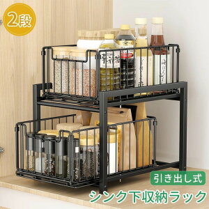 スムーズ 引き出し式 調味料収納ラック キッチンラック スライドラック バスケット 整理ラック 2段 大容量 調味料収納 洗面台下 調理台下 流し台下 食器収納 収納棚 台所 収納ラッ