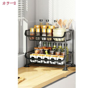 【2段の実用的な引き出し】引き出し式バスケットで中身が簡単に取り出せます。2段構造のキッチンオーガナイザーで、垂直空間を有効活用し、効率的な収納を実現します 【多機能デザイン】シンク下だけでなく、カウンターのスパイスラックや...