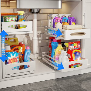 【2段スライド式 シンク下 収納】TATIU引き出し式シンク下収納は、2つのスライド式バスケットを備えており、キッチン、バスルーム、オフィスなどのコンパクトなスペースにアイテムを多目的に収納できます。...