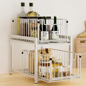 シンク下収納ラック スライド式 キッチン収納 L字型 2段 スライド式 引き出し シンク下 洗面台下 調味料 小物整理 大容量 組立簡単 省スペース キッチン/洗面所/バスルーム (ホワイト, 単品)...