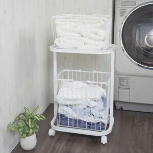 お客様の注目キーワードはこちら!大容量バスケットで使い勝手抜群 ランドリーバスケットラック (2段タイプ)サイズの違う2つのバスケットが付いたランドリーラックです。キャスターがついているので大容量の洗濯物でも簡単に運ぶことが