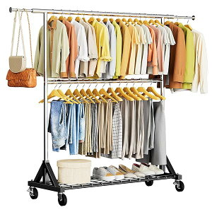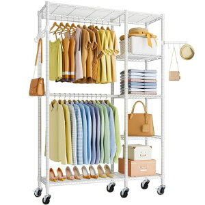 ハンガーラック 頑丈 2段収納 Luxspire 洋服ラック 大容量 キャスター付き スチールラック ハンガー 縦横伸縮 高さ伸縮 幅120-170cm 高さ162.5-185.5cm 下棚付き 洋服掛け...
