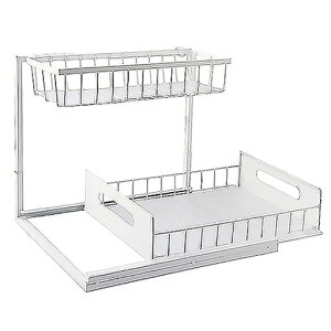 シンク下収納ラックキッチン収納 【2段スライド式シンク下収納】TATIU引き出し式シンク下収納は、2つのスライド式バスケットを備えており、キッチン、バスルーム、オフィスなどのコンパクトなスペースにアイテムを多目的に収納できます