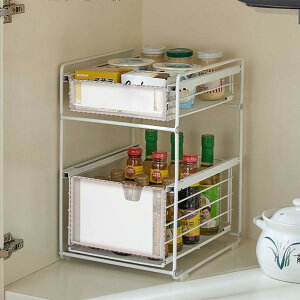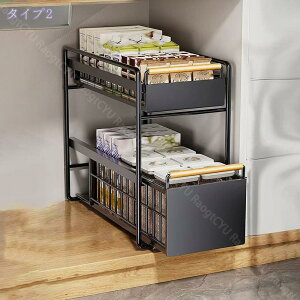 【2段引き出し式収納ラック】ダブルスライド式引き出し棚、アクセスが簡単、省スペース、デスクトップ、キッチンなどがよりすっきりします。底には4つの滑り止めの足が付いており、製品の使用プロセスがより安定し...