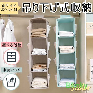 吊り下げ式収納具。2段、3段、4段とご用意しております。お色はブルー、グレー、ピンクからお選びください。記事はオックスフォード生地を使用。水洗い可能ですので、清潔にお使いいただけます。