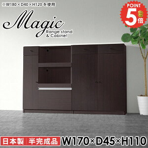 便利なコンセント付き!大容量食器棚magic レンジ台×キャビネット W170×D45×H110 木目サイズサイズ:約幅1700 奥行き450 高さ1100 mm材質[天板・スライド棚]メラミン樹脂化粧合板[前板]ブラウン...