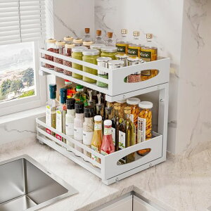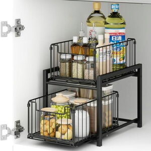【2段スライド式シンク下収納】2段式の引き出し式シンク下収納ラックは、力を入れずにスムーズにバスケットを引き出すことができます。必要なものをスムーズに取り出せます。ご注意:ご使用のキャビネットの開口部の縁が盛り上がってい