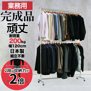 こちら 国産 組立不要のハンガーラック タフグラン F-class1200H ハイハンガーラック 2段 高さ最大203m 耐荷重200kg 幅120cm 業務用 伸縮式収納 キャスター付き 【商品番号...