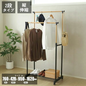 木目調 室内用2段ハンガーラック ●たっぷり掛けられる2段式! 上下2段タイプで、トップスやボトムスを分けて干したり、たくさんの衣類を一度に掛けられます。